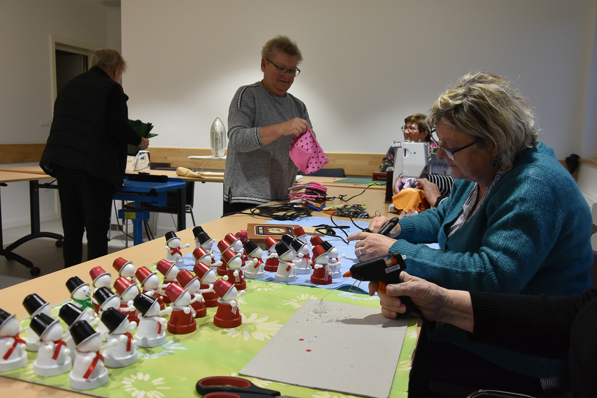 On y fabrique dans la bonne humeur des décos de Noël, des bonnets pour "Octobre rose", des sacs,etc...